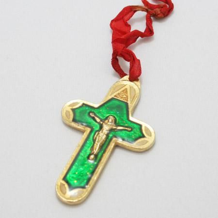 緑と金の色合いがステキなロザリオヘッド。インテリアとしても使えそうです。